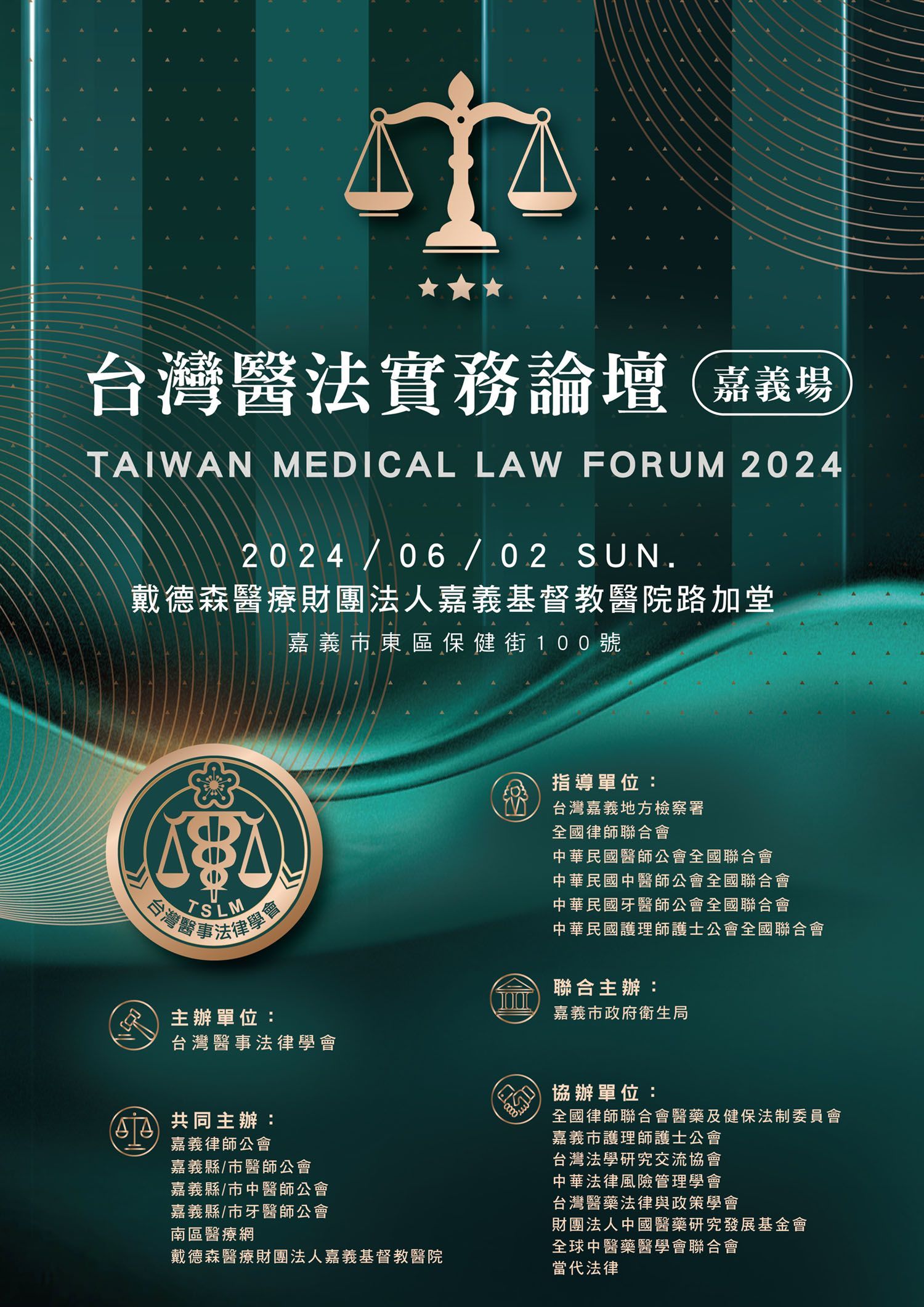◆共同主辦:嘉義律師公會、嘉義縣/市醫師公會、嘉義縣/市中醫師公會、嘉義縣/市牙醫師公會、南區醫療網、戴德森醫療財團法人嘉義基督教醫院